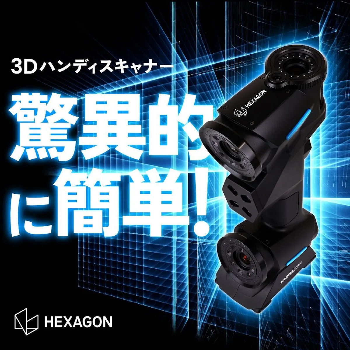 製造業の現場では、スピードと精度の両立が求められます。「MARVELSCAN」は、Hexagonが開発した高精度3Dスキャナーで、誰でも手軽に高品質な点群データを取得可能です。