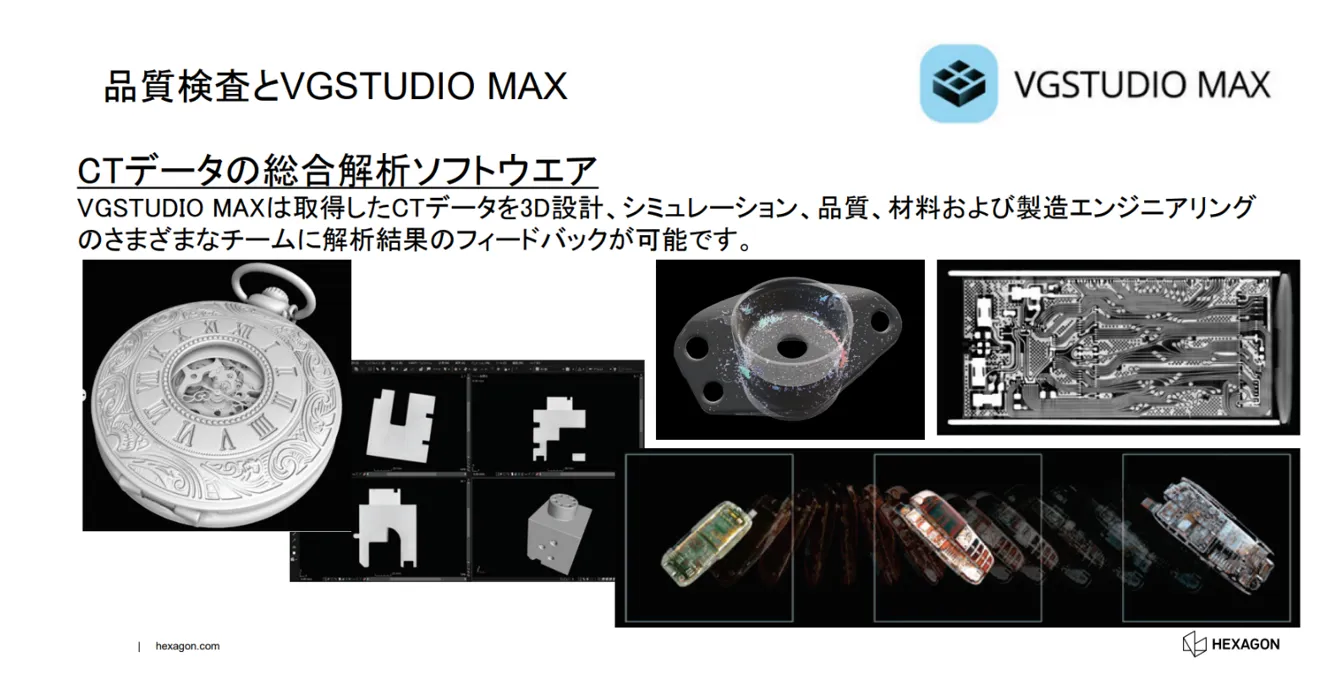 Hexagonの「VGSTUDIO MAX」は、X線CTで取得した内部データを多角的に解析できる強力なソフトウェアです。